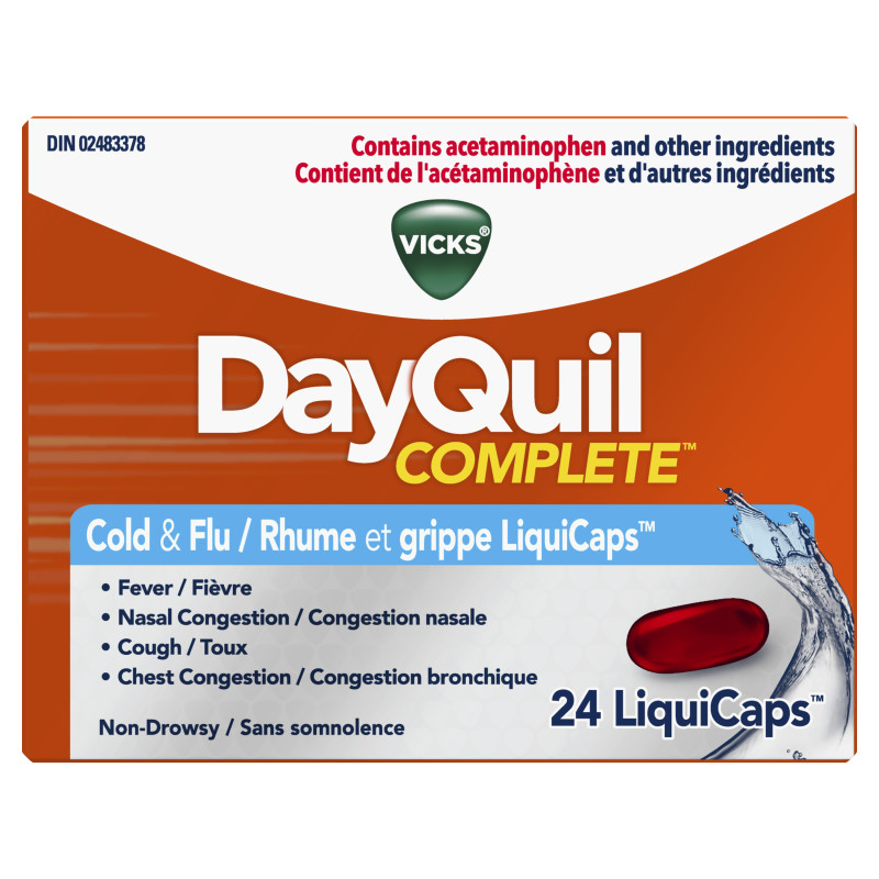 Vicks DayQuil Complete Cold & Flu Relief 24 LiquiCaps $15.99 24 LiquiCaps Vicks DayQuil Complete Cold & Flu Relief 24 LiquiCaps quantity Add to cart SKU: 056100081647 Categories: Cold & Flu, Cough Description Additional information Description 24 LiquiCaps Additional information Weight 0.5 lbs Dimensions 10 × 10 × 10 cm DIN/NPN 2483378 Related products Advil Cold & Sinus Liqui-Gels 10 Capsules $6.99 Add to cart Buckley’s Complete Extra Strength Day + Night Pack Cough, Cold & Flu 48 Caplets $16.99 Add to cart Benylin All-In-One Extra Strength Cold Flu & Cough Caplets Day & Night 24 Caplets (12 Day + 12 Night) $13.99 Add to cart Buckley’s Complete Extra Strength Night Time Caplets Cough, Cold & Flu 24 Caplets $8.99 Add to cart